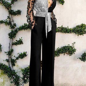 Elegant Flower Lace Mesh Long Sleeve Party Jumpsuit