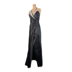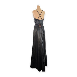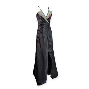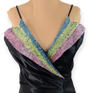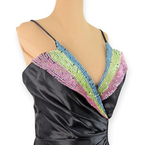Elegant Formal Sequined Black Satin Plunge V-neck Gown ~ Size 8 NEW