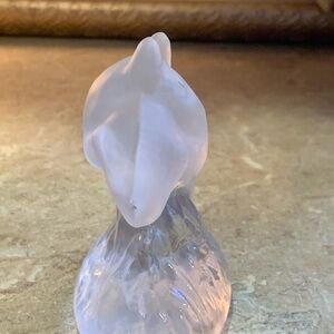 Enhance your home decor with this elegant frosted glass horse sculpture. Its sleek design and clear finish add a touch of sophistication to any room.