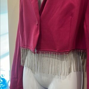 Elegant Fuchsia Blazer with Fringe Detail- XL