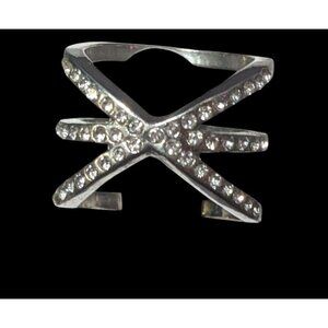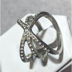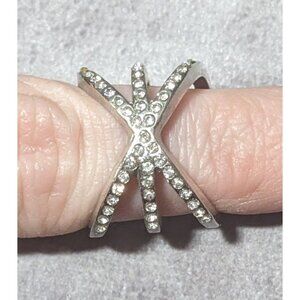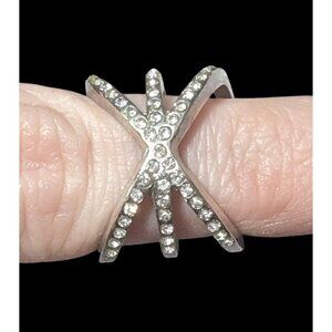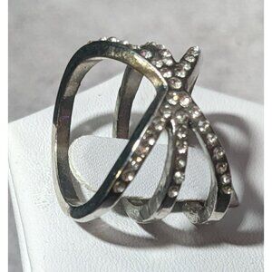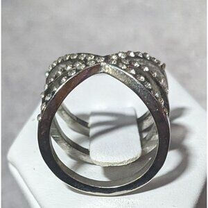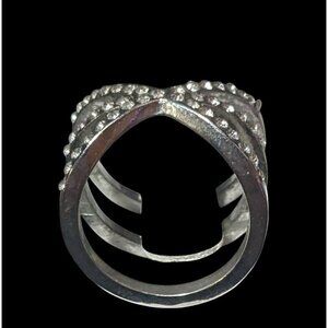 Elegant Glam Rhinestone Silver Tone Triple Crossover Ring Size 7