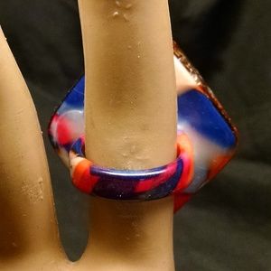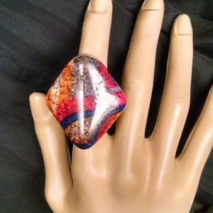 Beautifully Uniquely Designed Rare Gorgeous Elegant Extra Large Multi Color Stone Glitter Fashion Cocktail Evening Gala Prom Ring Size 6.5. It will be great for just about any fancy special occasion. This ring is so gorgeous, the pictures does not do it justice. It looks way better in person. It is a must have. It is a solid well made ring. Will come in a beautiful gift bag or box. A little over 1.5" at the longest top area. Hard to find.
