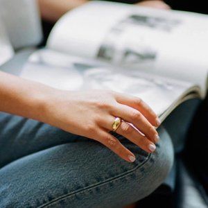This elegant gold band ring adds a touch of sophistication to any outfit. Perfect for any occasion.