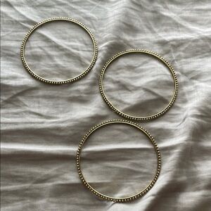 This elegant gold bangle bracelet adds a touch of sophistication to any outfit. Perfect for any occasion. Has 3 separate bracelets to form a stack