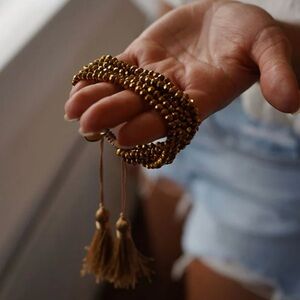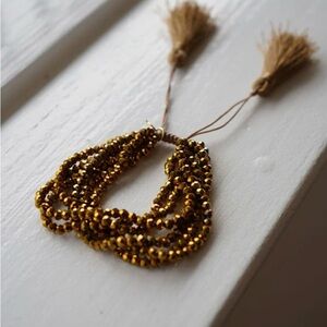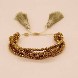 This elegant gold beaded bracelet adds a touch of sophistication to any outfit. Perfect for any occasion.