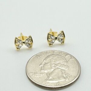 Add a touch of sparkle and charm with these elegant gold bow earrings.
