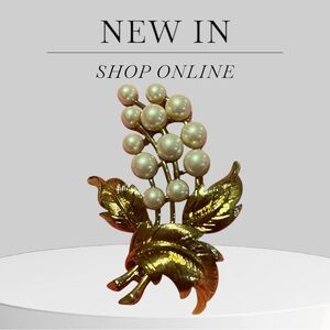 This exquisite brooch set features elegant gold designs adorned with pearls. Perfect for adding a touch of sophistication to any outfit.