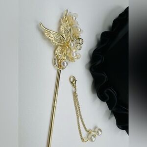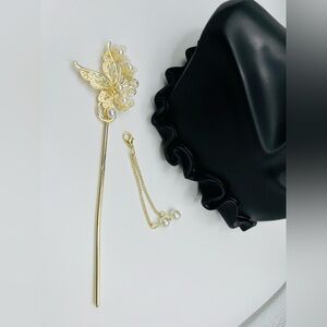 Exquisite Metal Hair Sticks with Vintage Charm: Crafted from high-quality metal, these gold hair sticks exude an elegant and retro atmosphere. Adorned with delicate pendants like pearls and gem stones, each hair stick showcases intricate designs inspired by Chinese culture. The vintage patterns, including flowers, butterflies, and bamboo, make these hairpins a captivating accessory to elevate any hairstyle. Perfectly Sized for Medium to Thick Hair: Ranging from 14.1cm/5.6" to 17cm/6.7" in length, these Chinese hair chopsticks are suitable for women and girls with medium to thick hair types. Their sturdy construction ensures they won't bend or break while securing your updo effortlessly. Gold Merging with Timeless Elegance: The gold metal hair sticks elegantly complement the overall design, adding richness and glamour to your hair. The pendants, available in white or green options, create a striking contrast against the golden backdrop. Versatile Design and Easy Updo Fixation: Thanks to their smooth edges and practical length, these Chinese hair sticks ensure a comfortable and hassle-free experience. The well-crafted design allows for easy insertion and secure fixation, preventing hair snagging and breakage. Whether you're styling a traditional Hanfu outfit, a bohemian updo, or simply securing a bun for a casual day out, these versatile hairpins have got you covered. No returns, items are NIB. Please ask if you have any questions before buying. Thank you ❤️🌻🫶🏻