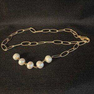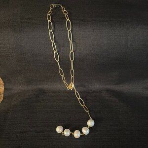 Elegant Gold Chain with Elongated Pearl Pendant - NEW