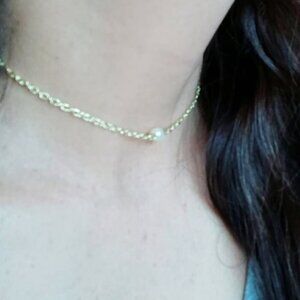 Chic gold choker featuring a subtle pearl detail. Ideal for a touch of elegance.