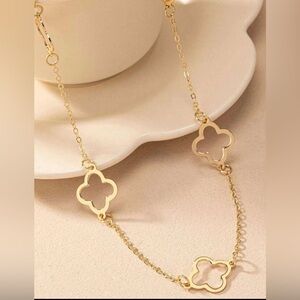 Long Gold Clover Necklace for Women – Elegant Four Leaf Clover Station Pendant Elevate your style with this elegant Gold clover station necklace, designed with delicate chain links and evenly spaced four-leaf clover pendants for a timeless and sophisticated look. The minimalist yet luxurious design makes it perfect for layering or wearing alone as a statement piece. Crafted for durability and shine, this fashion long necklace for women pairs beautifully with both casual and formal outfits. Ideal for daily wear, parties, weddings, and special occasions, it also makes a thoughtful gift for birthdays, anniversaries, or holidays. • Style: Long station necklace • Design: Clover pendant links (four-leaf pattern) • Material: High-quality alloy plated in silver-tone • Occasion: Everyday wear, party, wedding, or gift Lenght:70 cm + 7 cm