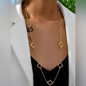 Elevate your style with this elegant Gold clover station necklace, designed with delicate chain links and evenly spaced four-leaf clover pendants for a timeless and sophisticated look. The minimalist yet luxurious design makes it perfect for layering or wearing alone as a statement piece. Crafted for durability and shine, this fashion long necklace for women pairs beautifully with both casual and formal outfits. Ideal for daily wear, parties, weddings, and special occasions, it also makes a thoughtful gift for birthdays, anniversaries, or holidays.