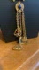 This stunning gold necklace features vibrant blue and red accents, perfect for adding a touch of elegance to any outfit. The intricate design and colorful details make it a standout piece in any jewelry collection.