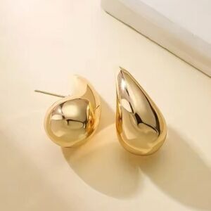 These elegant gold teardrop earrings add a touch of sophistication to any outfit. Perfect for any occasion.