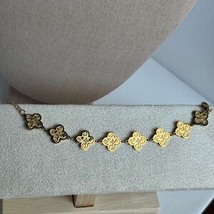 This elegant gold bracelet features a delicate floral design, perfect for adding a touch of sophistication to any outfit.