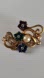 This exquisite gold brooch features vibrant floral accents in blue, green, and red. Perfect for adding a touch of elegance to any outfit.
