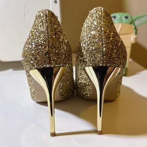 Shine with every step in these elegant gold glitter heels. Perfect for adding a touch of glamour to your outfit.