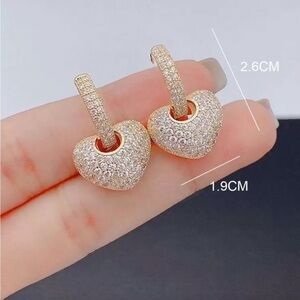 Elegant Gold Heart Drop Earrings with Sparkling Crystals