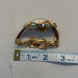 Small Rare Kirks Folly Gold Charms Watch, Small Wrist Charm Bracelet Watch, Vintage Gold Rhinestone Charms Watch. Not working needs battery, but a statement piece even for a bracelet in perfect condition.
