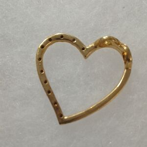 This elegant gold heart-shaped charm is perfect for adding a touch of sophistication to any outfit. The delicate design and shimmering gold color make it a versatile accessory for any occasion. stainless steel with gold. hypoallergenic