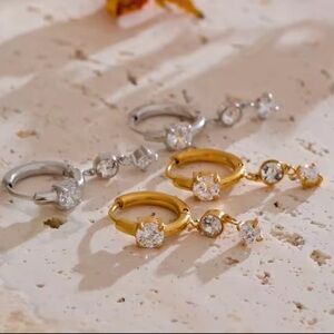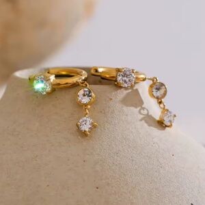 These stunning gold hoop earrings feature sparkling crystal accents, perfect for adding a touch of elegance to any outfit. Ideal for both casual and formal occasions.