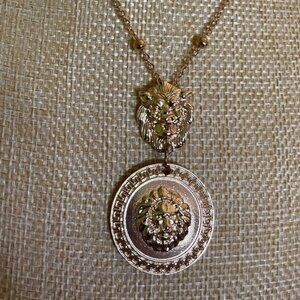Elegant Gold Lions Pendant Necklace with Greek Key Pattern