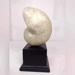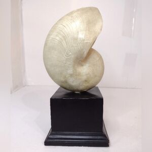 Enhance your home decor with this elegant gold nautilus shell sculpture. Its unique design adds a touch of sophistication to any space.