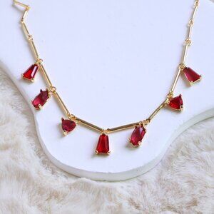 Elegant Gold Necklace with Red Gemstones Stylish Jewelry Comes with Dust Bag