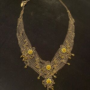 Elegant Gold Necklace with Yellow Floral Details tag reads : VCLM