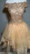Shine in this elegant gold off-shoulder dress, perfect for any special occasion. The intricate detailing adds a touch of sophistication.