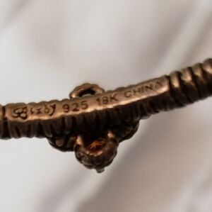 This exquisite gold over sterling bangle bracelet features intricate detailing, perfect for adding a touch of elegance to any outfit. Ideal for both casual and formal occasions. Topaz with diamond chips. Signed, 18k and 925