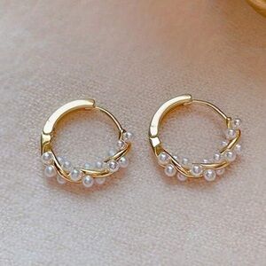Elegant Gold Plated Hoop Earrings with Pearl Inlays
