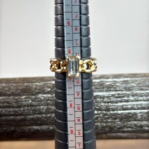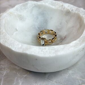 Stunning gold ring featuring a rectangular stone. Perfect for adding a touch of elegance.