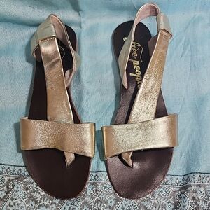 Step out in style with these elegant gold sandals. Perfect for any occasion, they offer both comfort and sophistication.