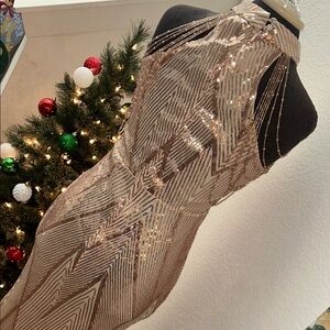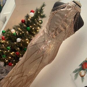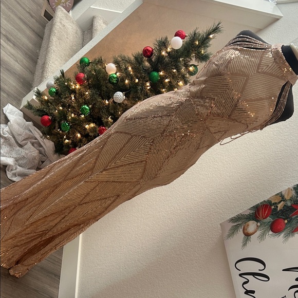 Shine in this stunning gold sequin evening gown. Perfect for special occasions, this dress offers a glamorous and sophisticated look.