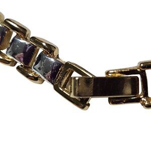 This bracelet features a sleek gold-tone metal design with white accents, offering a timeless and elegant accessory for various occasions.