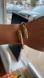 This stunning gold snake bracelet adds a touch of elegance to any outfit. Perfect for any occasion.