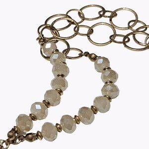 Elegant Gold Tone Beaded Chain Teardrop Pendant Statement Necklace Jewelry Women
