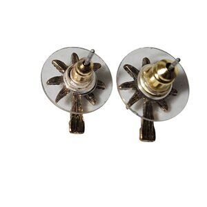 These lightweight, gold-tone stud earrings feature a charming palm tree design adorned with clear crystals, suitable for everyday wear or gifting.