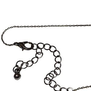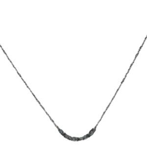 This necklace features a silver-tone chain with geometric beads, offering a minimalist yet modern design suitable for professional or casual settings.