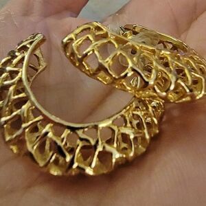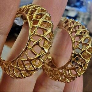 Elegant Gold Tone Trellis Design Large Hoop Earrings