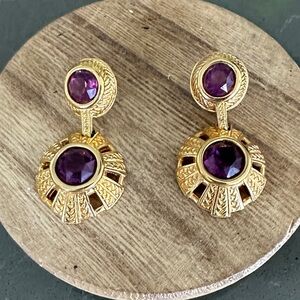 These stunning earrings feature a luxurious gold finish with captivating purple stones. Perfect for adding a touch of elegance to any outfit.