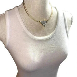 * Elevate your style with this elegant gold necklace featuring a stunning triangle pendant encrusted with sparkling stones. The delicate chain and geometric design make it a versatile piece, perfect for day-to-night wear.