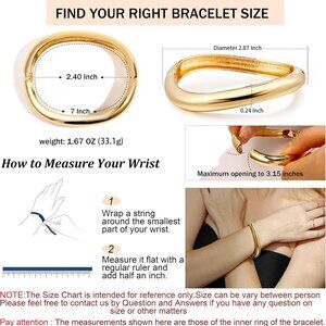 Features: This chunky open cuff bangle has a sleek, minimalist design with a polished finish. The hinge makes it super easy to slip on and off, and it fits most wrists comfortably—perfect for layering or wearing solo for a touch of effortless elegance.