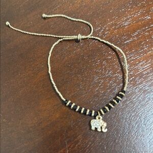 Elegant Gold and Black Beaded Elephant Charm Bracelet