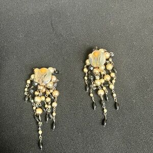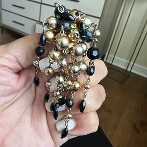 These elegant cluster earrings feature a stunning combination of gold and black beads, perfect for adding a touch of sophistication to any outfit. The intricate design offers a unique and stylish look.