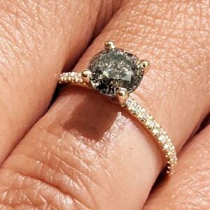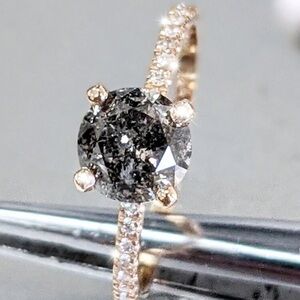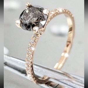 This stunning ring features a captivating black diamond set in a luxurious gold band. Perfect for adding a touch of elegance to any outfit.