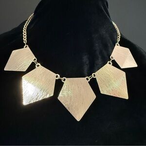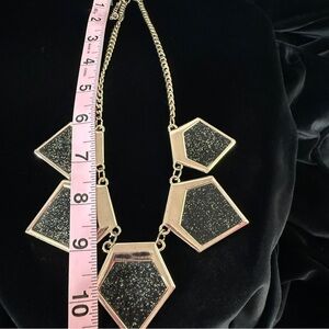 This stunning necklace features a bold geometric design with shimmering black accents set in a rosegold-tone frame. Perfect for adding a touch of elegance to any outfit.