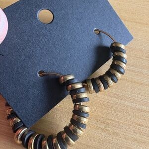 These elegant hoop earrings feature a striking combination of gold and black, perfect for adding a touch of sophistication to any outfit. Ideal for both casual and formal occasions.