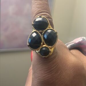 This stunning ring features a bold black gemstone set in a luxurious gold band. Perfect for adding a touch of elegance to any outfit.